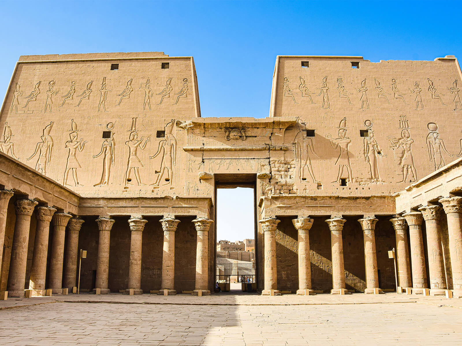 - After breakfast, travel to Edfu Temple by horse-drawn carriage. Discover its magnificent carvings depicting the victory of Horus over Set.