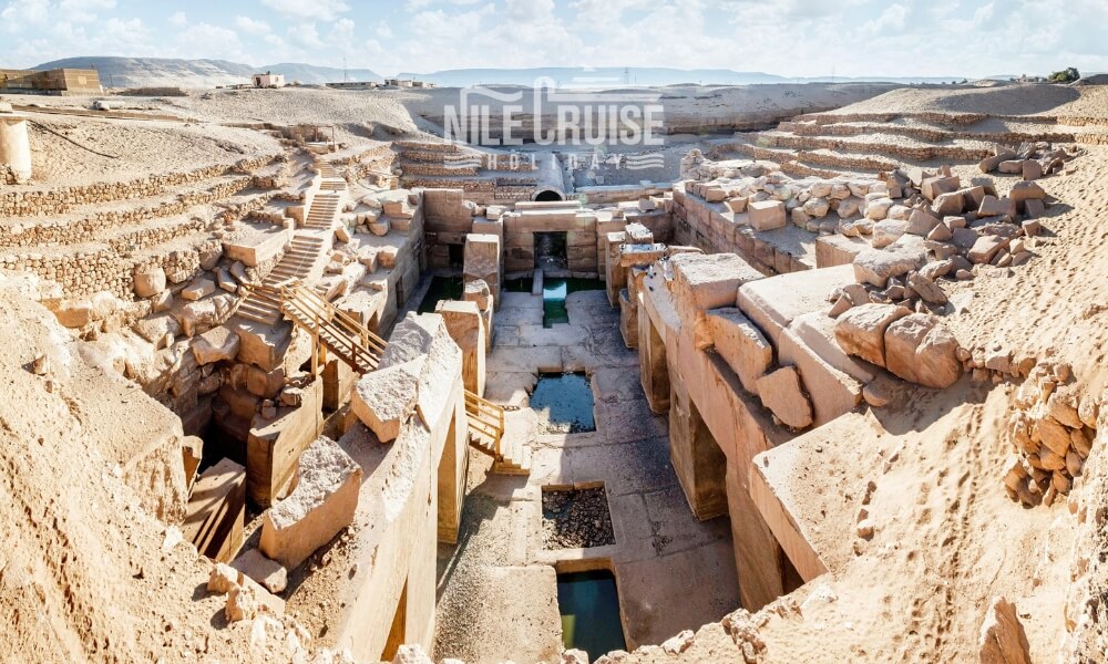 Abydos Temple, built by Pharaoh Seti I and completed by Ramesses II, honors Osiris, Isis, Horus, and other deities within seven aligned sanctuaries. Its reliefs are among Egypt’s finest, with crisp sunk carving and traces of vivid pigment that illuminate royal rituals and offerings. Abydos served as a major pilgrimage center for the Osirian mysteries, while the celebrated Abydos King List preserves the names of rulers from Egypt’s earliest dynasties. Behind the temple stands the enigmatic Osireion, a monumental, water-lined substructure that deepens the site’s ritual significance.