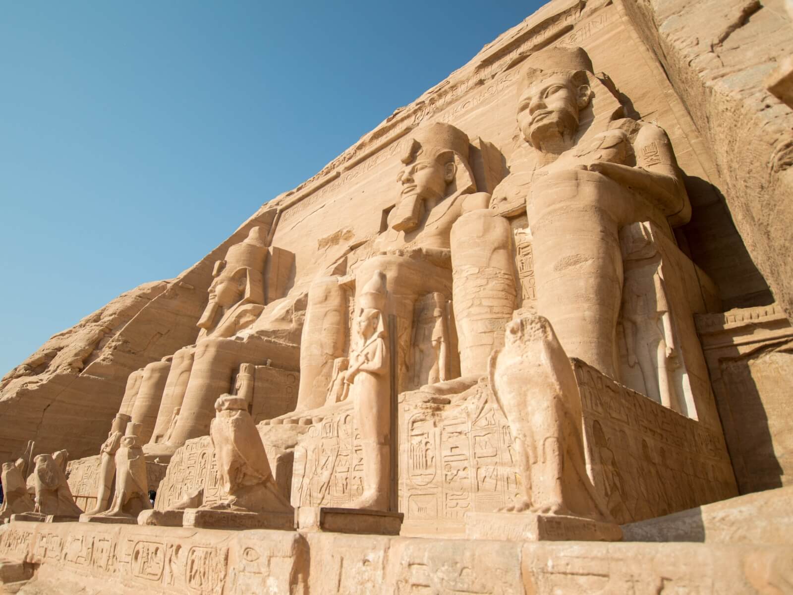 - Travel to the awe-inspiring Abu Simbel Temples, carved into sandstone cliffs by Ramses II. Admire the towering statues guarding the entrance and explore the intricate interiors dedicated to Ramses and his beloved queen, Nefertari.